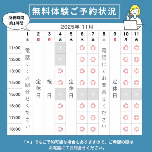 先のスケジュールが分からない…という方でも、都度ご予約いただけます。