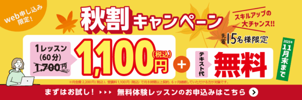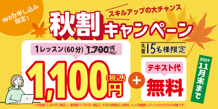 基礎から応用まで学べる!秋の転職もギリギリ間に合う!!