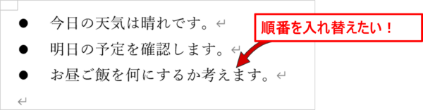 Wordで文章作成中、例えば箇条書き等で入力した後に、この文章の順番を入れ替えたいってなる時ありませんか?