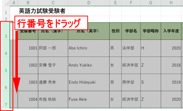 行番号を選択することがポイントです。
