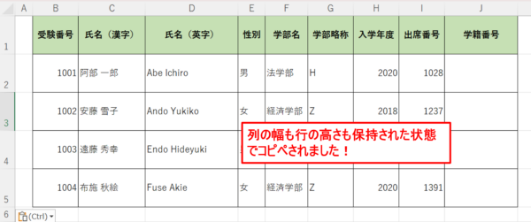 行の高さ、列の幅を保持してコピーする方法