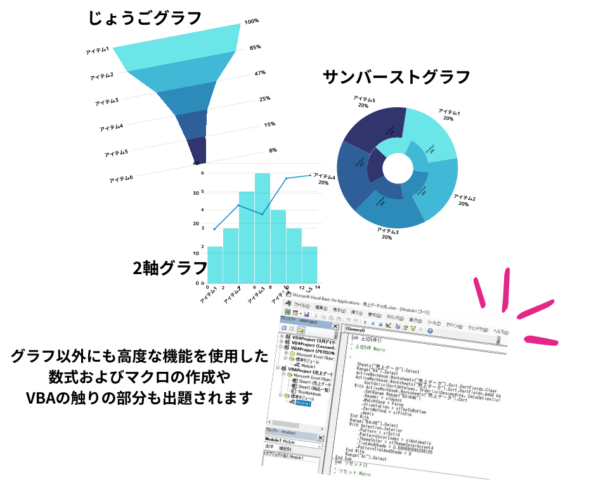 本番の試験で、どんな関数やグラフ、マクロが出ても慌てないよう、確実に苦手を潰すとスキルアップに繋がりますので頑張りましょう!