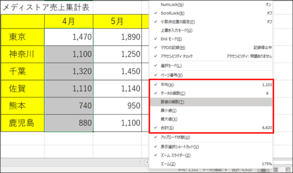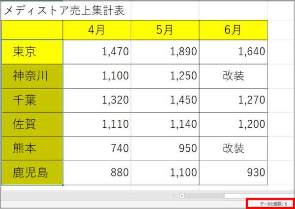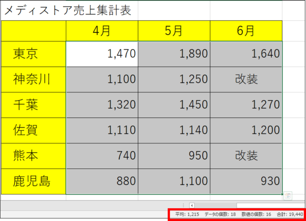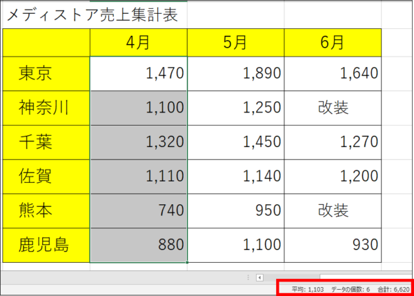 これだけで「合計」「平均」「データの個数」まで一目瞭然です!