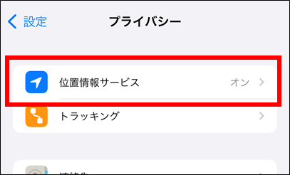 ①ホーム画面の『設定』から『プライバシー』をタップ