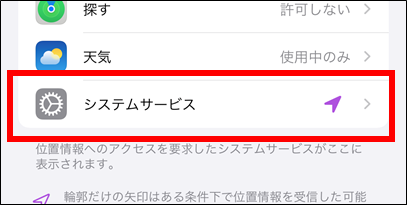 ③『システムサービス』をタップし、『利用頻度の高い場所』をオン