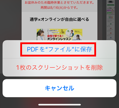 ⑤スクリーンショットの保存場所を任意で選択(ここでは『このiPhone内』を選択しました)