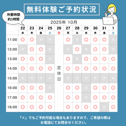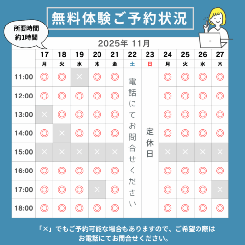 先のスケジュールが分からない…という方でも、都度ご予約いただけます。