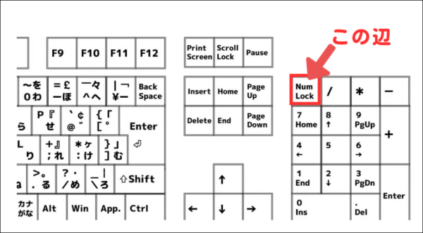 なぜ数字が入力できなくなってしまうかと言うと、そもそもNumLock(ナムロック)は、